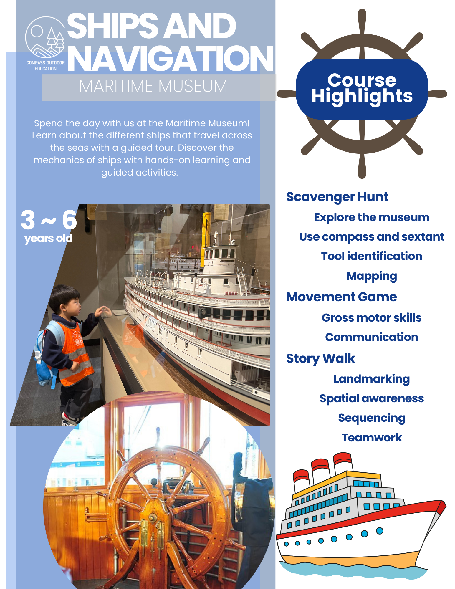 Spend the day with us at the Maritime Museum! Discover and learn all about the ships that sail the vast oceans. Explore the museum with a scavenger hunt and a story walk